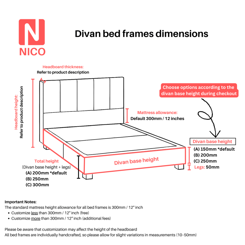 -Divan base height: (A) 150mm *default, (B) 200mm, (C) 250mm