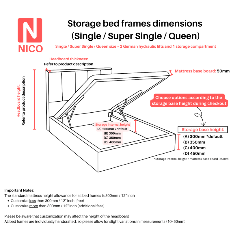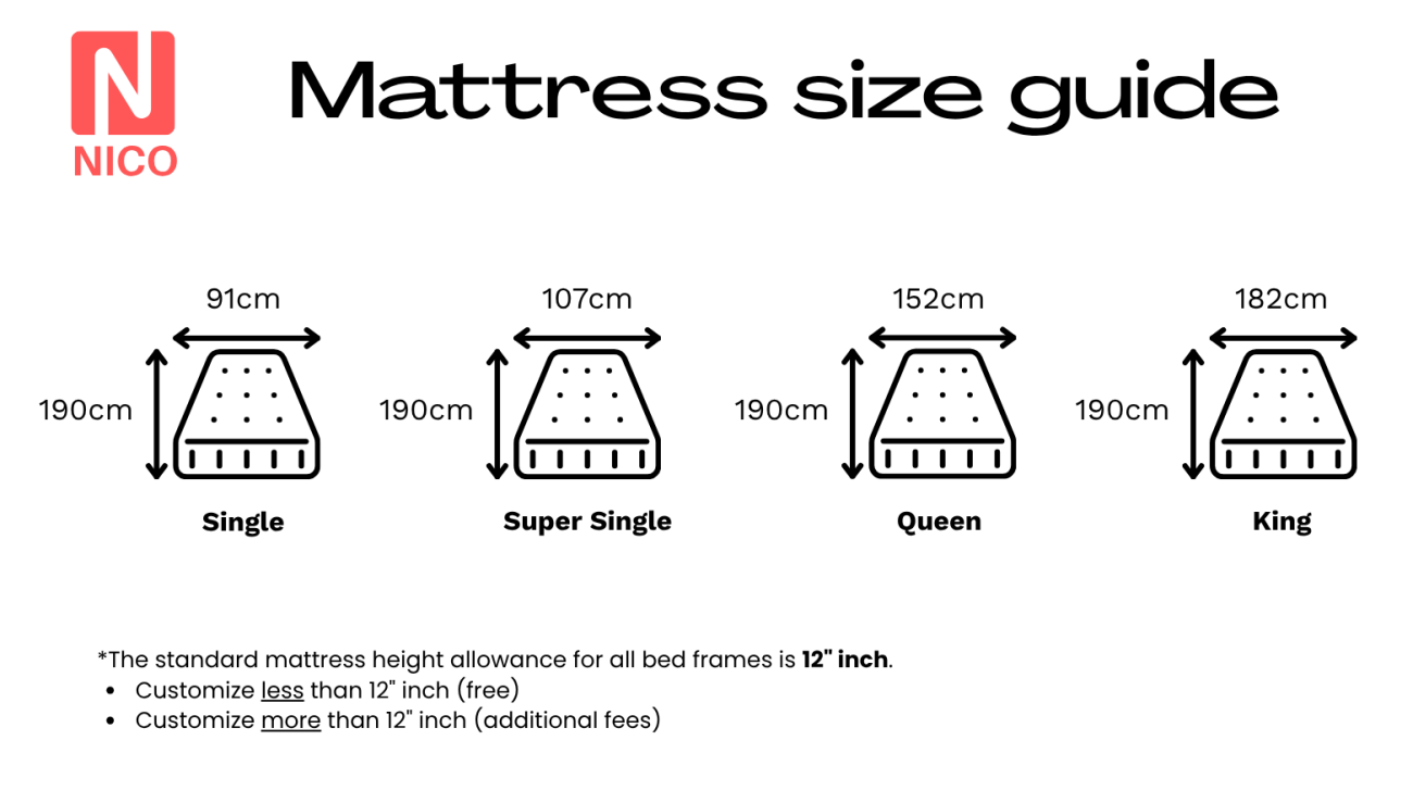 At NICO, our bed frames are designed to fit standard Singapore mattress sizes, but we're happy to customize them to your preferred dimensions.