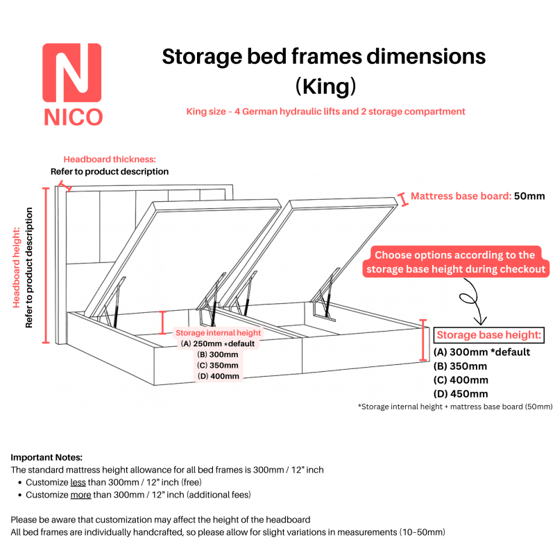 - All bed frames are individually handcrafted, so please allow for slight variations in measurements (10–50mm).